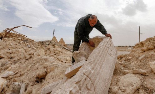 “The holidays need people, they need young boys and girls, not just piles of stone,” Dalloul said, gesturing at what remains of the mud brick walls of the Mar Elian monastery.