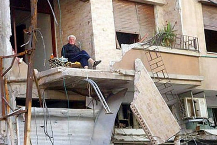 On May 1, 2012 a two-minute video of an elderly man sitting on the balcony of his bombed home in Homs, Syria was posted on YouTube.